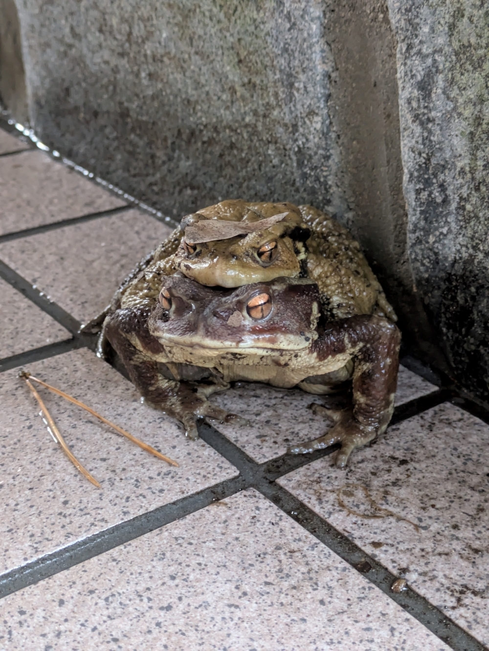 見つけたときは、腹を見せてひっくり返っていたカエル…。