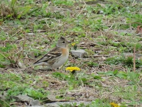 木や藪など逃げ込める場所がすぐ近くにある草地は小鳥たちにとって安全に採餌できる場所でよく採餌している姿が見られます。