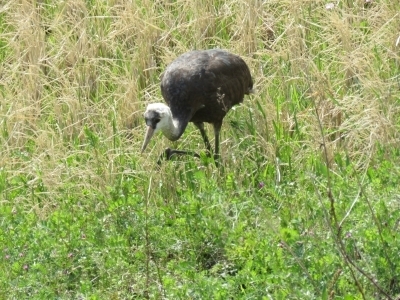 10羽ほどの群れの中にクロヅルも1羽混じっていました。