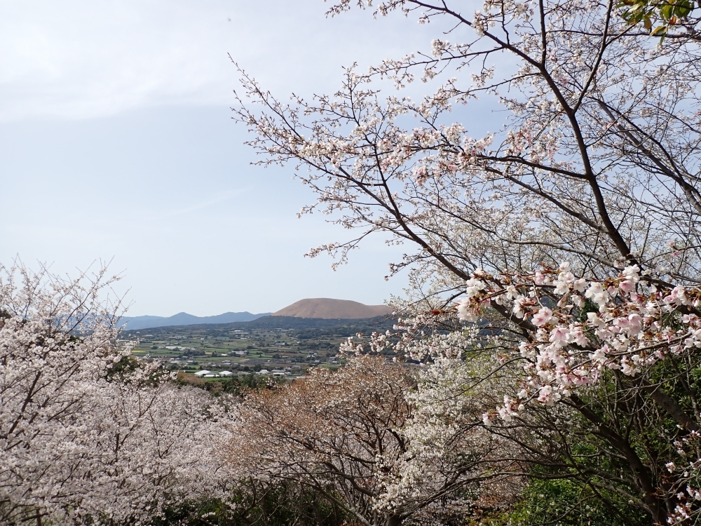 火山の火口あたりをぐるりと取り囲むように桜の木が植えられています。