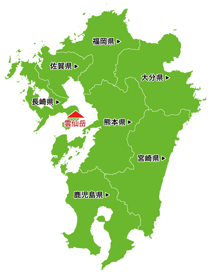 雲仙岳が眺望できる県をクリックしてみましょう。