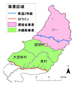 - 国頭村、大宜味村、東村(SFライン以北から伊地-安波ラインまで)