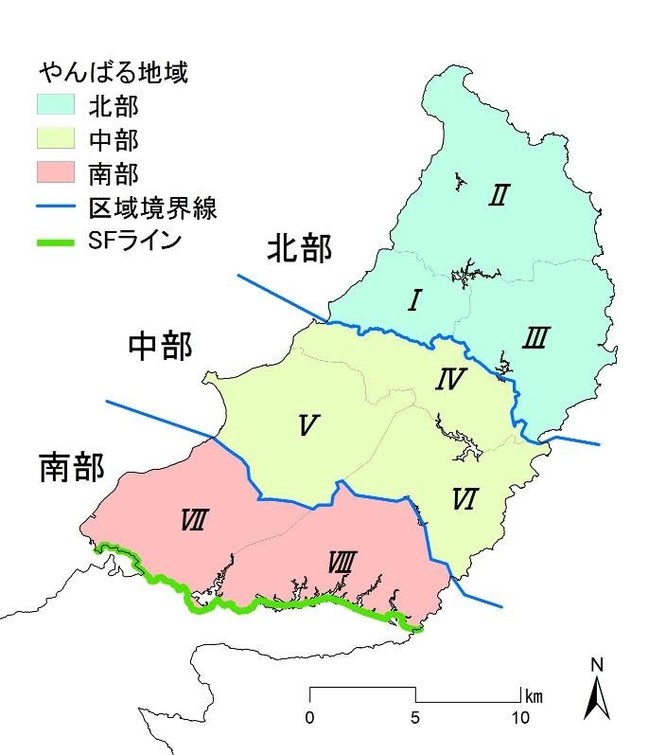 ・南部(主にSFライン以北の大宜味村、東村) : 第3期計画の作業区域Ⅶ、Ⅷ
