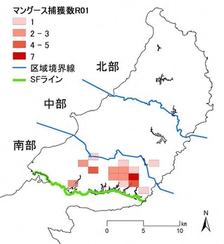 本資料では、完全排除を目標としているSFライン以北の捕獲結果のみを記載しています。