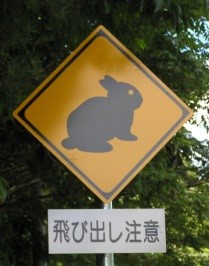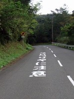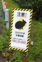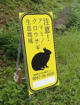 ◇アマミノクロウサギの交通事故が多発している地点には、下写真のような警戒標識などが設置されています。これらを見たら、特にご注意ください。