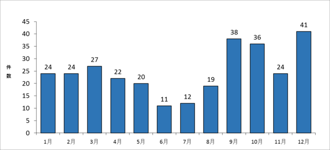 2.月別アマミノクロウサギ交通事故確認件数(奄美大島及び徳之島の合計)