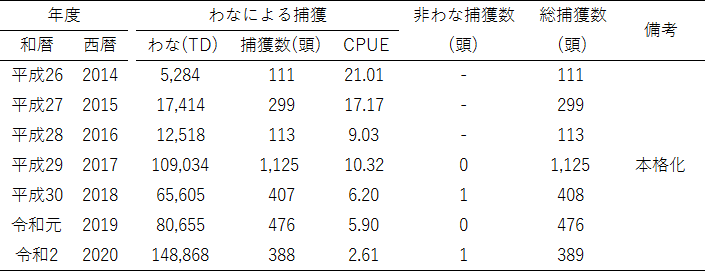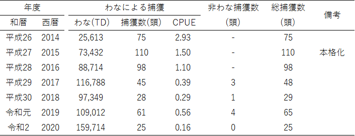 表3.第二バッファーゾーンにおけるマングース捕獲結果