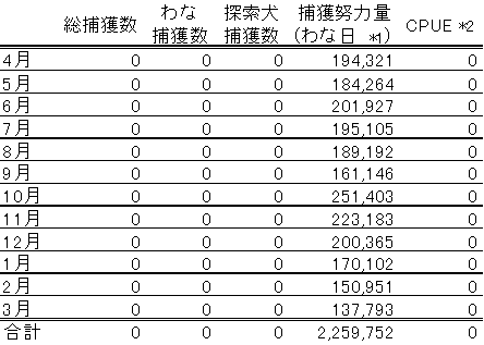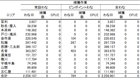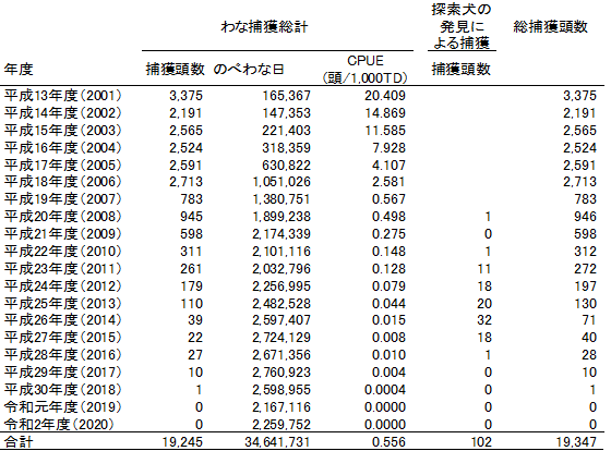 表2.捕獲数・捕獲努力量・CPUEの経年推移