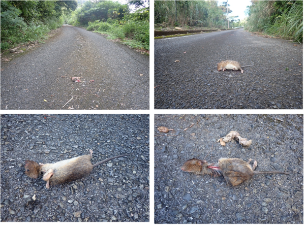 10月27日(水)に同林道通行中の住民より情報提供があり、環境省職員が現地確認をしたところ、林道上の約750mの区間で、死亡したトクノシマトゲネズミ7個体を発見した。発見時の状況からネコに捕殺されたものと推測し、環境省より国立環境研究所に遺伝子検査を依頼するとともに、同林道にネコ用ワナ及び自動撮影カメラを設置した。10月29日(金)には、設置したワナによりネコが捕獲され、糞からはトクノシマトゲネズミの毛が発見された。