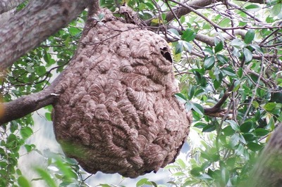 同様に9月の確認地点周辺を重点的に、巣の探索調査を行いました。11月20日に、同地点から500mほど離れた地点でツマアカスズメバチの巣を1つ確認し、翌日駆除しました。