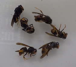 9月24日 壱岐市の養蜂農家がミツバチ巣箱付近を飛んでいたスズメバチ5個体を捕獲。
