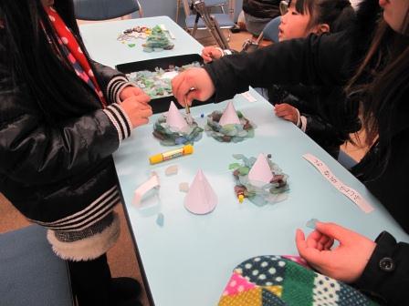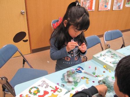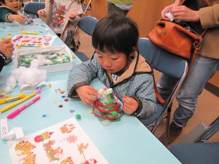 そして完成したツリーにはプラ版や綿、毛糸などを使って飾り付けしました(^^)ノ