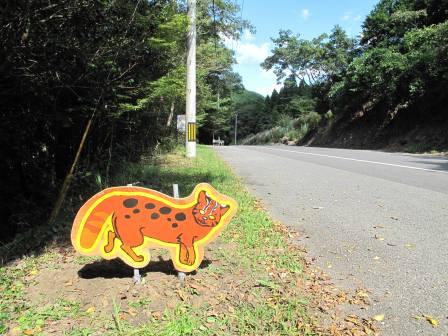 対馬島内に設置されているヤマネコ型看板!!