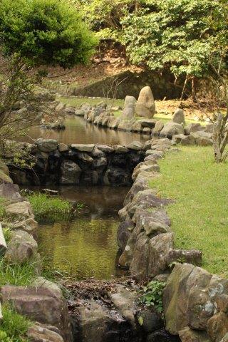 この道の脇にはちょっとした池とそこから流れ出る川があります。↓のような具合です。