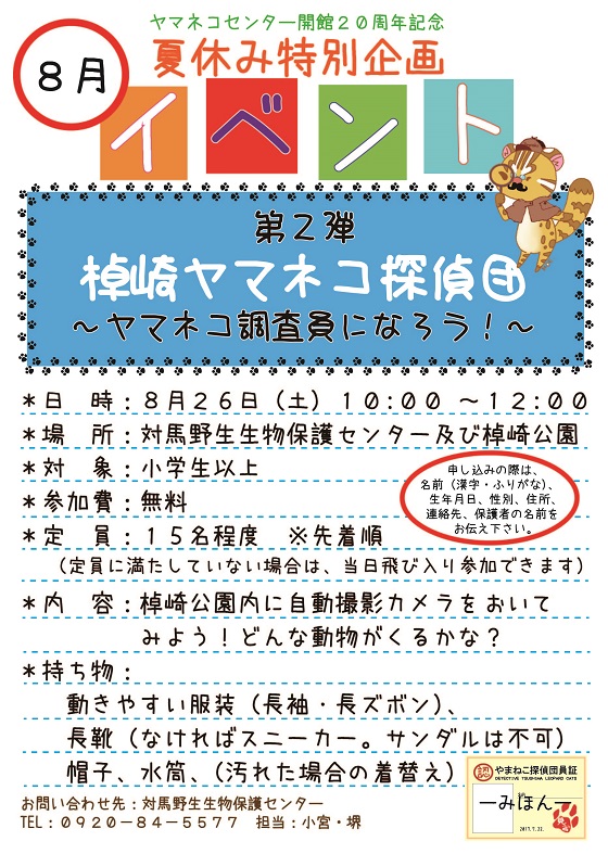 ヤマネコセンターにて「棹崎ヤマネコ探偵団」を開催しました。