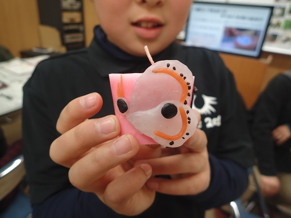 粘土のようなワックスシートを使って、対馬の生き物のキャンドルを上手に作っていただきました♪