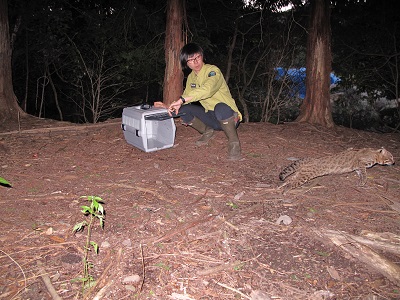 昨年7月から本年3月まで住民の方からもヤマネコを樫滝付近の道路上で目撃したと、たくさんの情報がセンターに寄せられており、交通事故が起きないように普及啓発活動を行っていましたが、残念ながら事故が発生してしまいました。