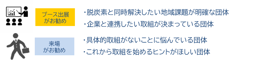 ※ 地方公共団体と企業のいずれもブース出展・来場が可能